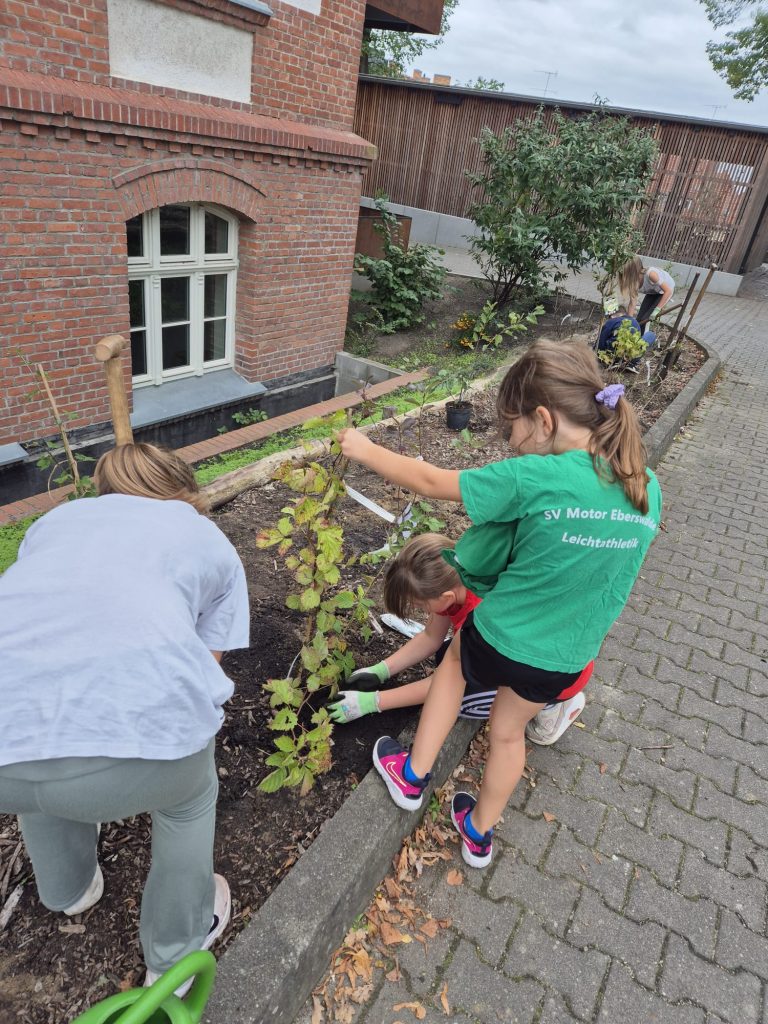 Der eigentlich für Oktober geplante Spendenlauf wurde auf den 19. September 2025 vorgezogen und mit weiteren Aktionen bereichert. Unter Anleitung von Anja Mattersteig (Stiftung Waldwelten), die schon seit 2023 den Schulgarten betreut, pflanzte jede Klasse ihren eigenen Naschobst-Strauch. Außerdem absolvierten Studenten der HNEE ihre Prüfung zu Waldpädagogen, indem sie die Schüler im offenen Angebot „Naturdetektive“ im Schulgarten der Schule betreuten. In interaktiven „Missionen“ gingen die Kinder einem Mordfall durch giftige Vogelbeeren auf die Spur und wurden zu Experten im Zuordnen von Nahrung, Fell- und Fußspuren. Hinzu kamen Bastelangebote, und die Station des Waldschweins. Auch eine Fotobox für gemeinsame Siegermomente der Spendenläufer war auf dem Schulhof aufgebaut und mitten drin ein Deutsch-Polnischer-Schüleraustausch.