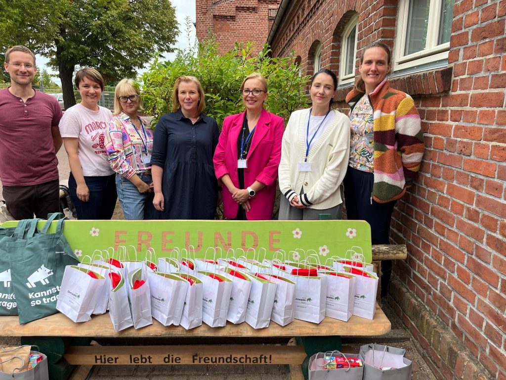 „Sie heißen Wunscherfüller, nicht Förderverein, ohne sie geht gar nichts. Wir müssen unsere Wünsche nur laut denken und schon sind sie dabei das für uns zu organisieren und umzusetzen“, so Katrin Wegner Schulleiterin der Bruno-Hans-Bürgel Grundschule. Natürlich sei sie auch dankbar, für die zahlreichen Eberswalder, die beim Bürgerbudget für die Bürgel Schule gestimmt haben, aber Katrin Wegner weiß das Engagement des Fördervereins zu schätzen. So auch bei den Geschenken für die polnische Austauschklasse. Jedes Kind erhielt ein Bürgel-Shirt, um damit Zusammengehörigkeit zu zeigen. Gemeinsame Freundschaften entstanden aus der einfachen Initiative motivierter Lehrkräfte. Somit kann dasLehrkräfteteam nach diesem gemeinsamen Vormittag auch sagen: „Für uns war es trotzdem ein schönes Schulfest, obwohl das eigentliche Jubiläum verschoben werden musste, ein gelungener Start ins neue Schuljahr“. Jetzt mit einer Partnerschule in Polen.