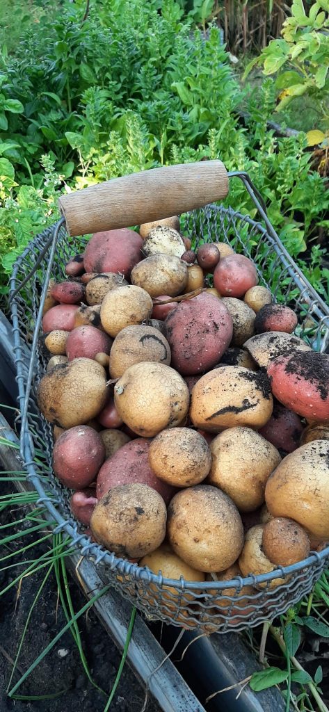 Die Klasse 2c hatte das große Vergnügen der Kartoffelernte. Nachdem wir uns mit dem Gartenlied begrüßt haben, starteten die kleinen Wühlmäuse mit dem Durchforsten der beiden Kartoffelhochbeete, ziemlich schnell wurde der Korb voll!