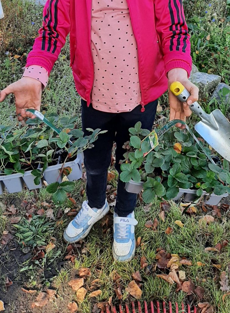 Die Klasse 3f bereitete heute, nach dem lieb gewonnenen Pflanzensuchspiel, das große Erdbeerbeet vor, schließlich wollen wir im kommenden Jahr noch mehr Erdbeeren naschen. Ein Schüler brachte 2 Körbe mit Erdbeerjungpflanzen von zuhause mit, vielen Dank noch einmal dafür! Gekaufte Exemplare wurden gepflanzt und eigene kleine Kindel von der Mutterpflanze getrennt und getopft. Tomaten bereicherten die Frühstückspause, das Beet wurde geräumt und mit neuen Salaten bepflanzt. Eine neue,letzte Brennesseljauche wurde außerdem angesetzt, sie wird später auf den überdauernden Kulturen wie z B. Rosenkohl verteilt.