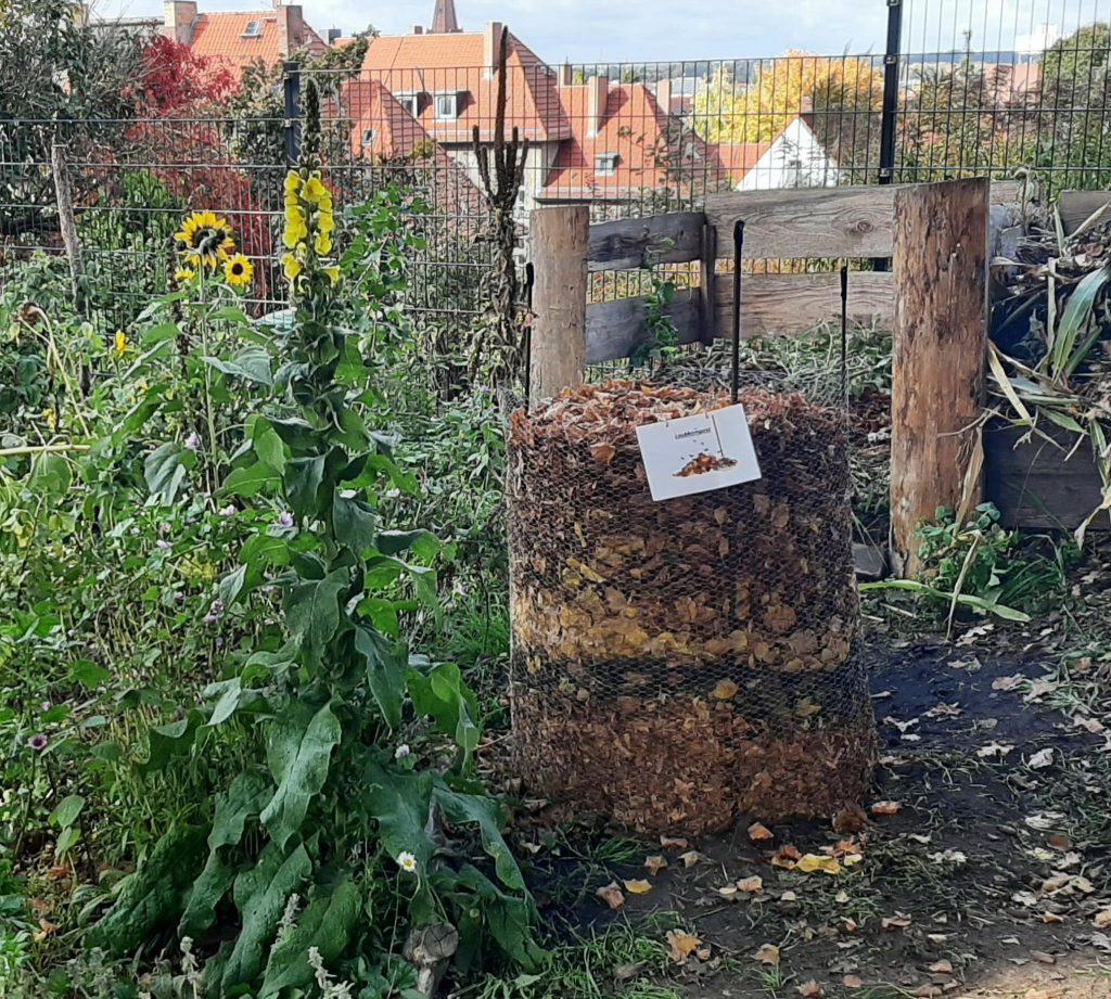 Die Bäume verlieren nach und nach ihre Blätter und wir können diese im Garten sehr gut gebrauchen! Eifrig baute die 6b einen Laubkompost und füllte diesen. Versetzt mit etwas Komposterde als Starthilfe, werden wir im nächsten Jahr feine Komposterde bekommen. Im Blumen- und Obststräucherbeet schützt das Laub vor Kälte und Trockenheit und nährt außerdem die wichtigen Bodenbewohner.
